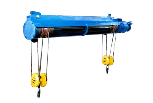 市場上雙鉤雙吊點電動葫蘆所謂雙吊點鋼絲繩電動葫蘆是指有兩個間隔一定距離的吊點,并能同時上升或同時下降的電動葫蘆?,F有的雙吊點鋼絲繩電動葫蘆有,在- - 臺鋼絲繩電動葫蘆卷筒兩端各有-套吊鉤滑輪裝置,這種雙吊點電動葫蘆因兩套吊鉤滑輪裝置均由--個卷筒起升或下降,可以保證兩吊點同時升降;
