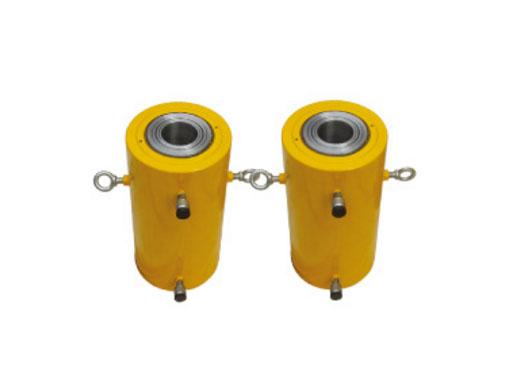 雙作用空心千斤頂:又叫張拉頂、穿心頂、空心柱塞頂,具有操作方便,使用壽命長的特點,廣泛運用在預應力施工,橋梁修造,公路及鐵路建設,電廠電站修造,設備提升,機械拆卸等方面。中心孔可供電線、鋼筋等穿過,中心孔徑可根據用戶需要進行加工,單向頂為單作用,彈簧回程,適用于行程較短,如要求空心頂行程較大,請選雙作用空心千斤頂。
