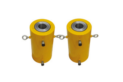 雙作用空心千斤頂:又叫張拉頂、穿心頂、空心柱塞頂,具有操作方便,使用壽命長的特點,廣泛運用在預應力施工,橋梁修造,公路及鐵路建設,電廠電站修造,設備提升,機械拆卸等方面。中心孔可供電線、鋼筋等穿過,中心孔徑可根據(jù)用戶需要進行加工,單向頂為單作用,彈簧回程,適用于行程較短,如要求空心頂行程較大,請選雙作用空心千斤頂。