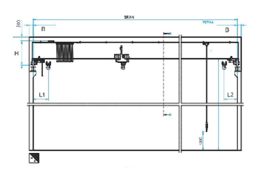 | 起重量 | 跨度 | 起升高度 | 工作級別 | 起升速度 | 基本尺寸(mm) | 小車自重 | 整機自重 | 軌道推薦 | 總功率 | 最大輪壓 | |||||
