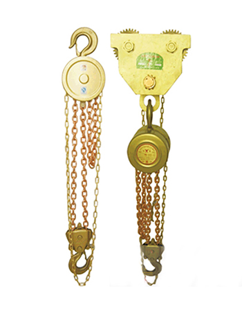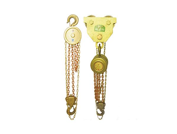 防爆手拉葫蘆以鋁青銅、鈹青銅作為毛坯,防爆手拉葫蘆外殼采用H62銅合金材料,其轉(zhuǎn)動(dòng)齒輪經(jīng)過高溫?zé)崽幚韽亩_(dá)到齒輪據(jù)有很高的耐磨性。在作業(yè)中產(chǎn)品相互摩擦撞擊不會產(chǎn)生機(jī)械火花,在易燃易爆場所不引爆氣體,有效防止火災(zāi)事故。